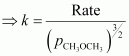 The rate of reaction is followed by increase in pressure in a closed vessel, so the rate can also be expressed in terms of the partial pressure of dimethyl ether, i.e.,