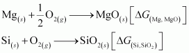 The temperature at which ΔfG curves of these two substances intersect is 1966 K. Thus, at temperatures less than 1966 K, Mg can reduce SiO2 and above 1966 K, Si can reduce MgO.