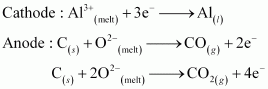 Ans : In the electrometallurgy of aluminium, a fused mixture of purified alumina (Al2O3), cryolite (Na3AlF6) and fluorspar (CaF2) is electrolysed. In this electrolysis, graphite is used as the anode and graphite-lined iron is used as the cathode. During the electrolysis, Al is liberated at the cathode, while CO and CO2 are liberated at the anode, according to the following equation.