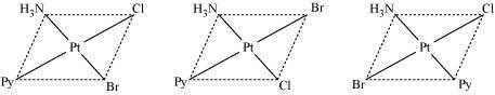 - #12Write all the geometrical isomers of [Pt(NH3)(Br)(Cl)(py)] and how many of these will exhibit optical isomers?