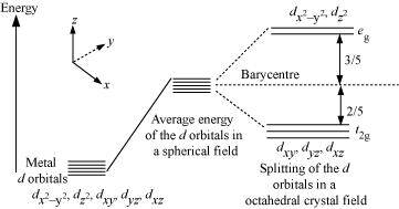 experience a rise in energy and form the eg level, while dxy, dyzand dzx experience a fall in energy and form the t2g level.