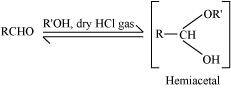 Aldehyde reacts with one molecule of a monohydric alcohol in the presence of dry HCl gas.