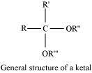 Ketals are gem-dialkoxyalkanes in which two alkoxy groups are present on the same carbon atom within the chain. The other two bonds of the carbon atom are connected to two alkyl groups.