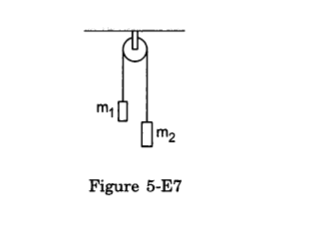 - Qstn #22In a simple Atwood machine, two unequal masses m1 and m2 are connected by a string going over a clamped light smooth pulley. In a typical arrangement (figure 5-E7), m1 = 300 g and m2 = 600 g. The system is released from rest.