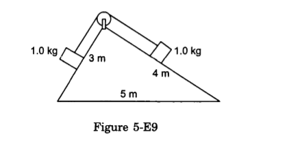 - Qstn #25Consider the situation shown in figure (5-E9). All the surfaces are frictionless and the string and the pulley are light. Find the magnitude of acceleration of the two blocks.