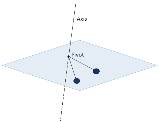 The axis of rotation passes through the pivot of the pendulum, perpendicular to the plane containing the pendulum.