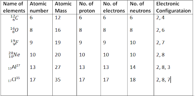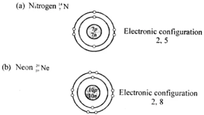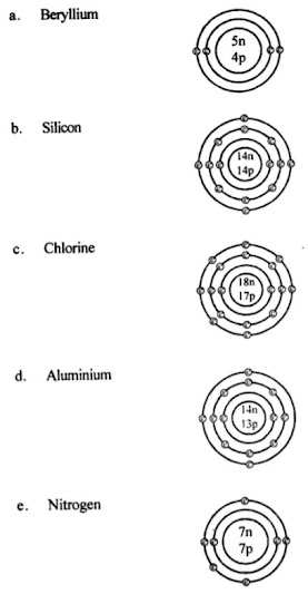 5. Draw the electronic configuration of the following elements clearly stating the number of neutrons and protons in their nucleus.