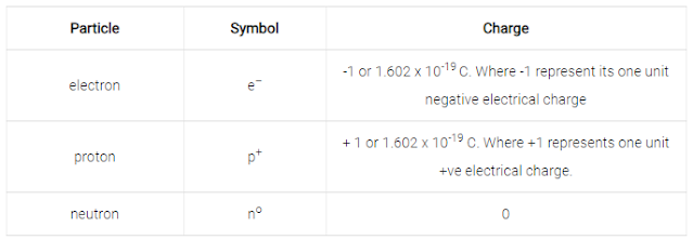 - Electron: It is represented by e it has a unit negative charge and possesses mass equal to 1/1837 times that of a proton.