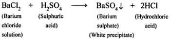 6. On reaction with sulphuric acid solution, barium chloride forms a white precipitate of barium sulphate.
