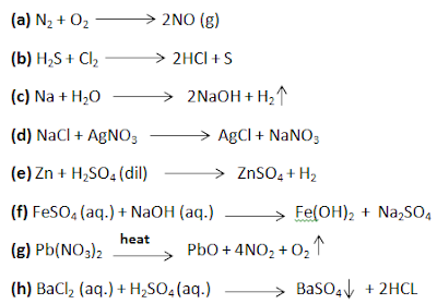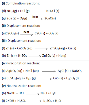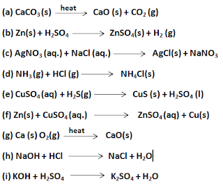 2. Classify the following reactions as combination, decomposition, displacement, precipitation and neutralization. Also balance the equations.