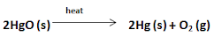 - Mercuric oxide when heated, decomposes to form two elements mercury and oxygen.