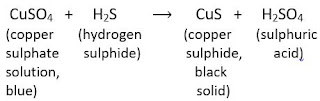 (b) When blue coloured copper sulphate reacts with hydrogen sulphide gas, a black coloured substance copper sulphide is formed.