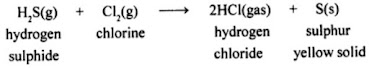 (c) The reaction between hydrogen sulphide and chlorine (both gases) produces sulphur (solid) and hydrogen chloride (gas).