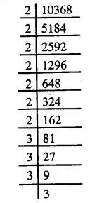 On grouping, the prime factors of 10368 as shown; one factor i.e., 2 is left which cannot be paired with equal factor.