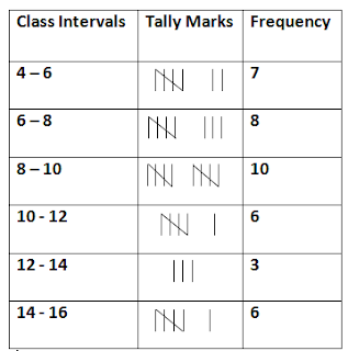 - Qstn #5Construct a frequency distribution table for the following data; taking class-intervals 4-6, 6-8, ...... 14-16.