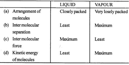 (d) Kinetic energy of moleculesAns : Distinction between Liquid and Vapour on the basis of: