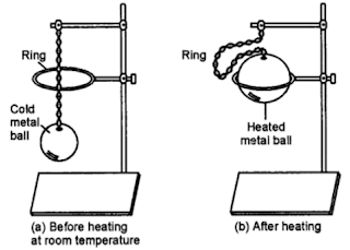 the ball increases in size. Now on cooling the ball again it can pass through the ring.