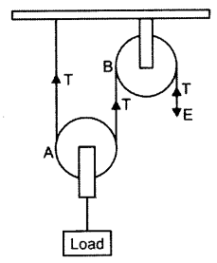 The distance travelled by load is half the distance moved by effort = ``\frac { x }{ 2 }``