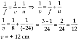 - #6-cAn object is placed at a distance 24 cm in front of a convex lens of focal length 8 cm.Ans : Given u = - 24 cm, f= + 8 cm, v = ?