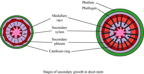 - Qstn #3Explain the process of secondary growth in stems of woody angiosperm with help of schematic diagrams. What is the significance?