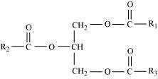 , where R1, R2, and R3 are fatty acids. These three fatty acids can be same or different.