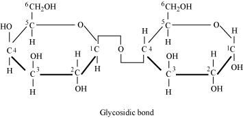 Glycosidic bond is formed normally between carbon atoms, 1 and 4, of neighbouring monosaccharide units.