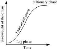The growth of living organisms in their natural environment is characterised by an S-shaped curve called sigmoid growth curve. This curve is divided into three phases - lag phase, log phase or exponential phase of rapid growth, and stationary phase.