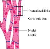 1. The cells of skeletal muscles are unbranched. 1. The cells of cardiac muscles are branched. 2. Intercalated disks are absent. 2. The cells are joined with one another by intercalated disks that help in coordination or synchronization of the heart beat. 3. Alternate light and dark bands are present. 3. Faint bands are present. 4. They are voluntary muscles. 4. They are involuntary muscles. 5. They contract rapidly and get fatigued in a short span of time. 5. They contract rapidly but do not get fatigued easily. 6. They are present in body parts such as the legs, tongue, hands, etc.
