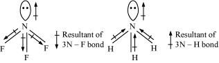 Thus, the resultant moment of the N-H bonds add up to the bond moment of the lone pair (the two being in the same direction), whereas that of the three N - F bonds partly cancels the moment of the lone pair.