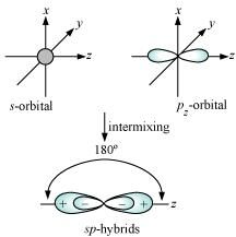 Shape of sp hybrid orbitals: sp hybrid orbitals have a linear shape. They are formed by the intermixing of s and p orbitals as: