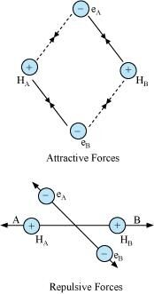 The force of attraction brings the two atoms together, whereas the force of repulsion tends to push them apart.