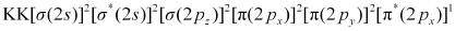 Since the 1s orbital of each oxygen atom is not involved in boding, the number of bonding electrons = 8 = Nb and the number of anti-bonding electrons = 4 = Na.