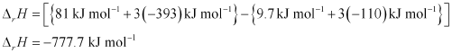 CO2(g) + 2H2O(l) ; ΔrHθ = -726 kJ mol-1