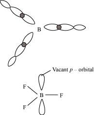 Ans : The electric configuration of boron is ns2 np1. It has three electrons in its valence shell. Thus, it can form only three covalent bonds. This means that there are only six electrons around boron and its octet remains incomplete. When one atom of boron combines with three fluorine atoms, its octet remains incomplete. Hence, boron trifluoride remains electron-deficient and acts as a Lewis acid.