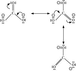 is sp2 hybridised and is bonded to three oxygen atoms.