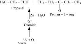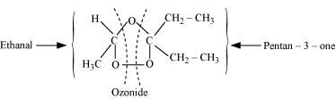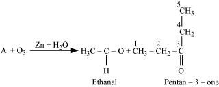 Ans : As per the given information, propanal and pentan-3-one are the ozonolysis products of an alkene. Let the given alkene be ‘A’. Writing the reverse of the ozonolysis reaction, we get: