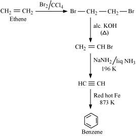 () Ethyne () Ethene () HexaneAns : null () Benzene from Ethyne: