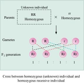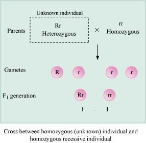 Ans : Test cross is a cross between an organism with unknown genotype and a recessive parent. It is used to determine whether the individual is homozygous or heterozygous for a trait.