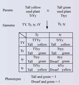 Ans : A cross between tall plant with yellow seeds and tall plant with green seeds will produce