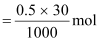 - #3-b30 mL of 0.5 M H2SO4 diluted to 500 mL.Ans : Number of moles present in 1000 mL of 0.5 M H2SO4 = 0.5 mol
