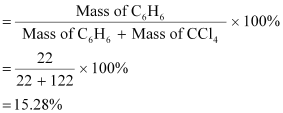 if 22 g of benzene is dissolved in 122 g of carbon tetrachloride.Ans : Mass