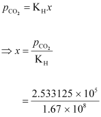 law constant for CO2 in water is 1.67 × 108 Pa at 298 K. Calculate the quantity of CO2 in 500 mL of soda water when packed under 2.5 atm CO2 pressure at 298 K.Ans : It