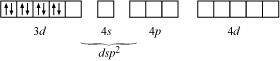 It now undergoes dsp2 hybridization. Since all electrons are paired, it is diamagnetic.
