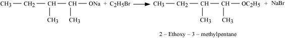 - Qstn #10Write the reactions of Williamson synthesis of 2-ethoxy-3-methylpentane starting from ethanol and 3-methylpentan-2-ol.