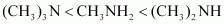() Considering the inductive effect and the steric hindrance of alkyl groups, CH3NH2, (CH3)2NH, and (CH3)3N can be arranged in the increasing order of their basic strengths as: