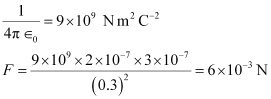 Hence, force between the two small charged spheres is 6 × 10-3 N. The charges are of same nature. Hence, force between them will be repulsive.