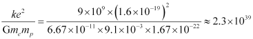This is the ratio of electric force to the gravitational force between a proton and an electron, keeping distance between them constant.