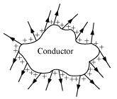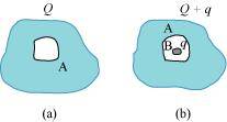 - #28-aA conductor A with a cavity as shown in Fig. 1.36(a) is given a charge Q. Show that the entire charge must appear on the outer surface of the conductor.Ans : Let us consider a Gaussian surface that is lying wholly within a conductor and enclosing the cavity. The electric field intensity E inside the charged conductor is zero.