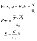 Let E is the electric field just outside the conductor, q is the electric charge,