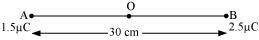 Ans : Two charges placed at points A and B are represented in the given figure. O is the mid-point of the line joining the two charges.